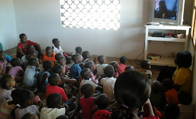 Pictured are some of the kids enjoying a dvd on the final day of holiday club.