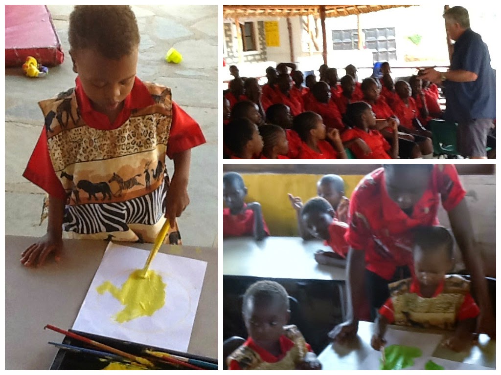 The weather was the subject for a painting session with playgroup and kg 1. the weather is in the syllabus this term and learning about different types of weather and making pictures helps the children to understand and remember what they are learning.Papa Dave came in to school talk about mining in the classes 6, 7 and 8.