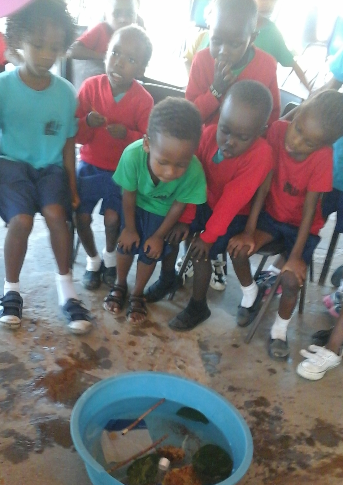 Kg 3 and  Kg 2 pupils  had a lesson in physical science, investigating what materials float and what sinks!