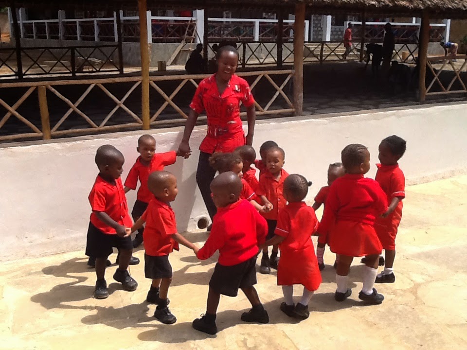 The baby class kids are enjoying having a very big space to play and take their classes with their teacher Madam Getry.