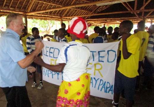 So he was bowled over when our secondary students, kitted out in the colours of his beloved Leeds United, ran in to greet him singing the team’s anthem,  Marching On Together.