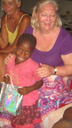 Auntie Judith is pictured showing a particular skill for football, and Dawn Heather is pictured here performing a very special job at kidz club – presenting birthday girl, Salama, with her gift.
