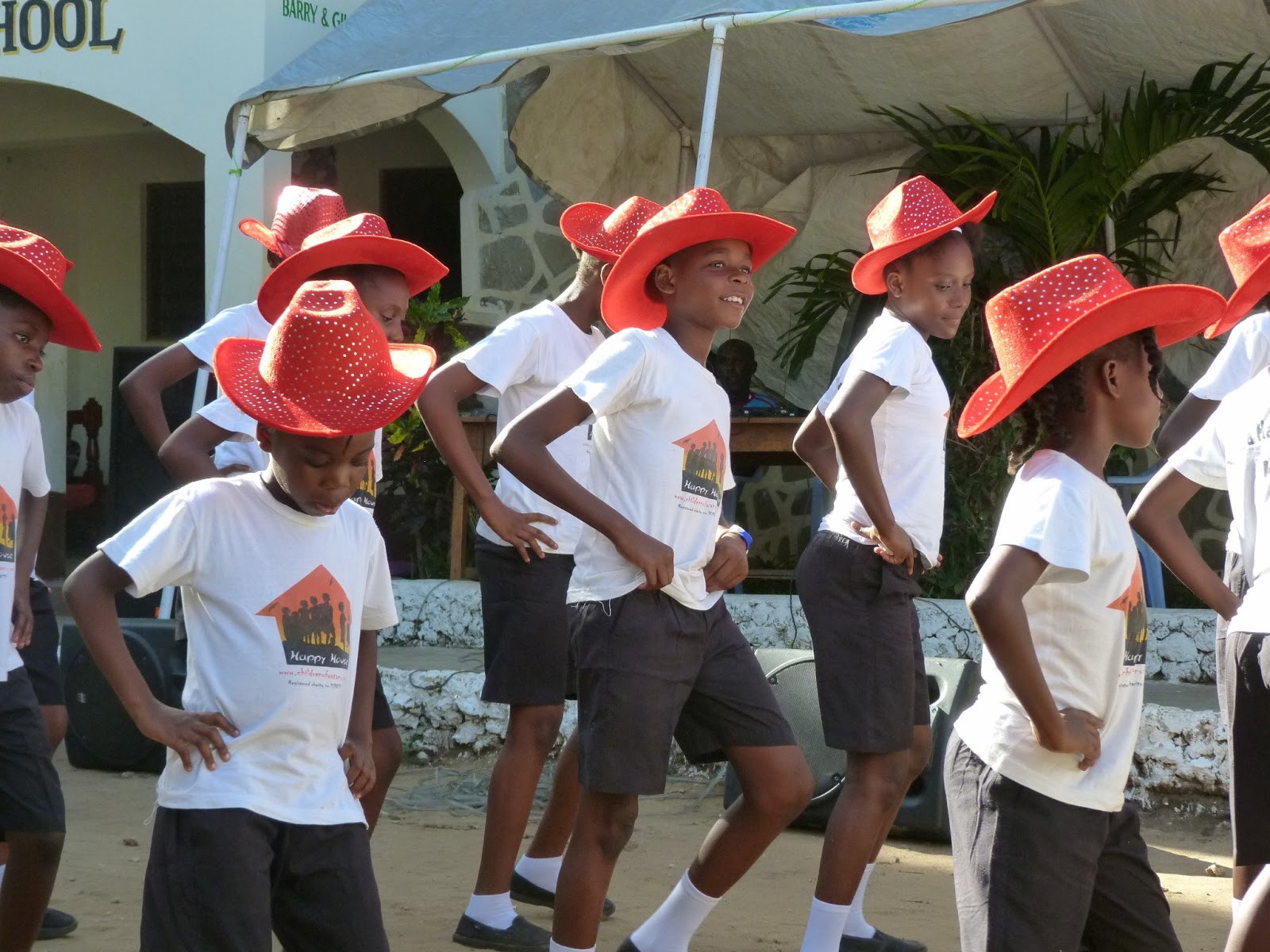 Our kids, looking so smart and bright in their Happy House t-shirts, black shorts and red cowboy hats, were the first of the children’s homes represented to entertain and everyone was thrilled by their line dancing display.
