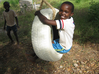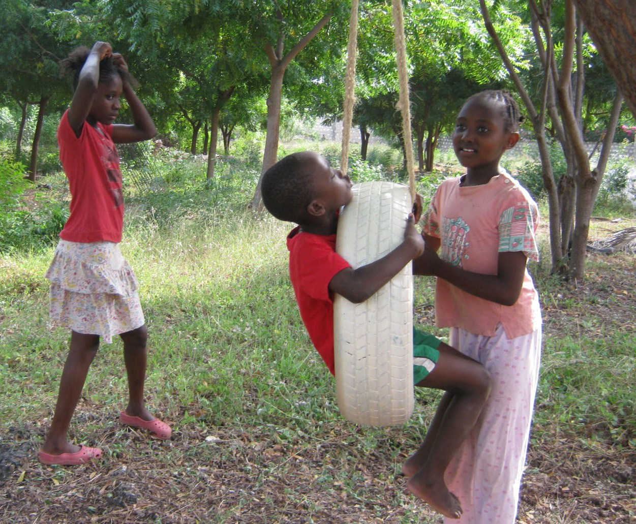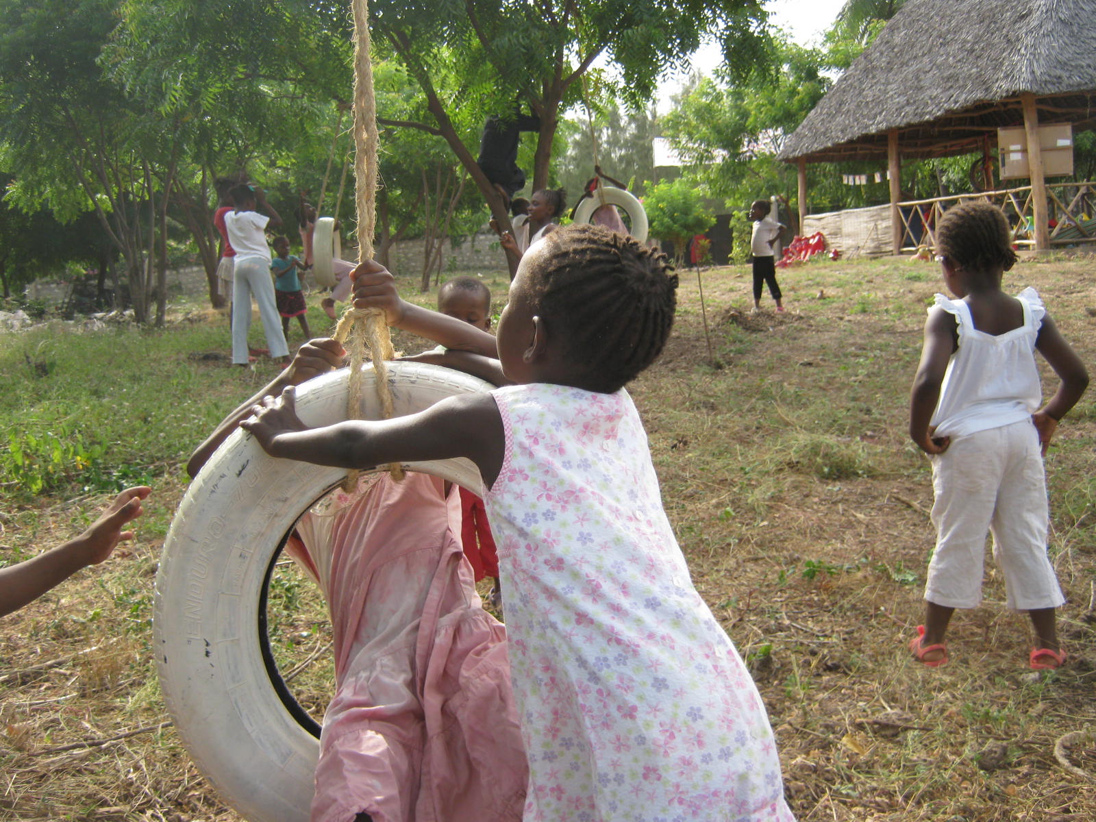 Papa Dave using his considerable charm and negotiating skills persuaded a garage in Malindi to donate some old tyres, and together with very strong rope, bought when the water tank was being installed, Mama had everything needed to make some swings.