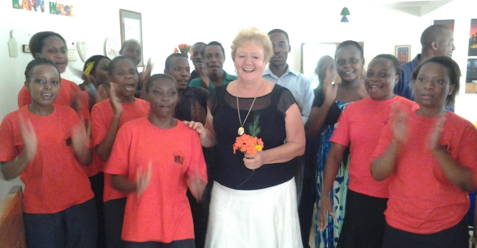 Then Uncle Billy told her she was needed by one of the aunties and when she went to see what was wrong, all the staff on duty were waiting,with flowers, to wish her a happy birthday