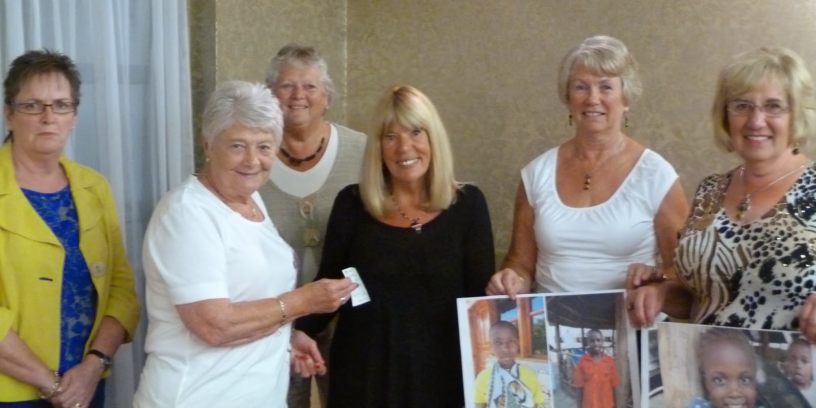 At the end of the evening, overseas officer Pat Wilson (second left) and president Linda Willetts (far right) presented Elizabeth with a cheque for £300 which had been raised with Pat’s help at a coffee morning and by a dinner for friends hosted by Margaret Watkins.