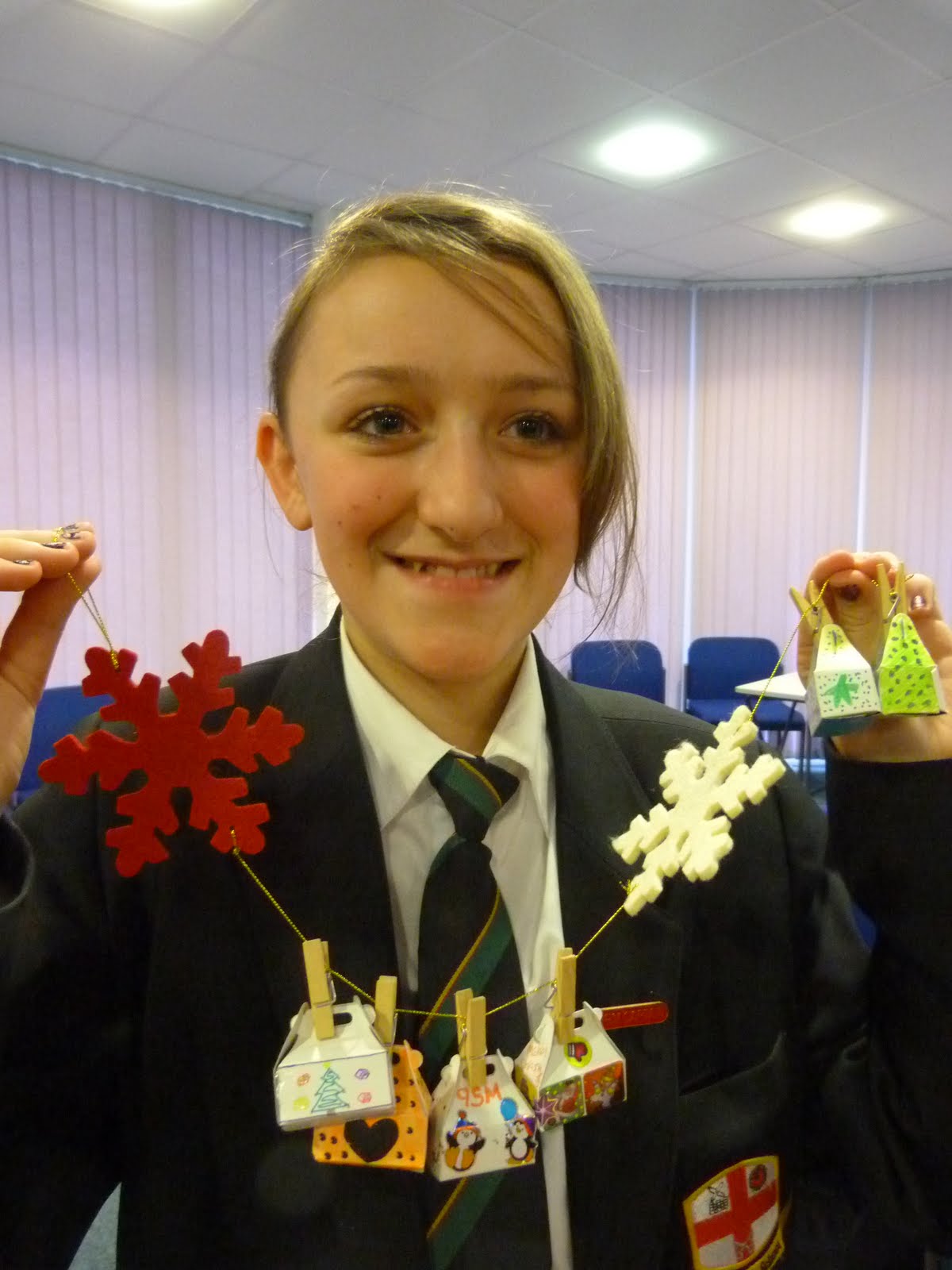 And because we always need funds to meet our bills they decided to have some festive fun by asking their fellow pupils to parcel up a £1 coin in a decorated box – with prizes for the most creative – and then strung the parcels up as decoration! The £1 coins added up to £125.