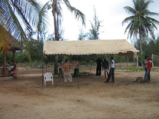 Today we are getting ready for the Grand opening, we have hired some shades and chairs and everyone is busy putting everything in order. The children are all excited and practising their songs, Welcome to the Happy House, If you are Happy and you know it clap your hands. The Mums have all the clothes ready to change the children after lunch, clothes that so many of you have donated. I can’t wait to stand on the steps in front of all the visitors and say ‘ Please say hello to the Happy House Kids staff and volunteers March 2010!!