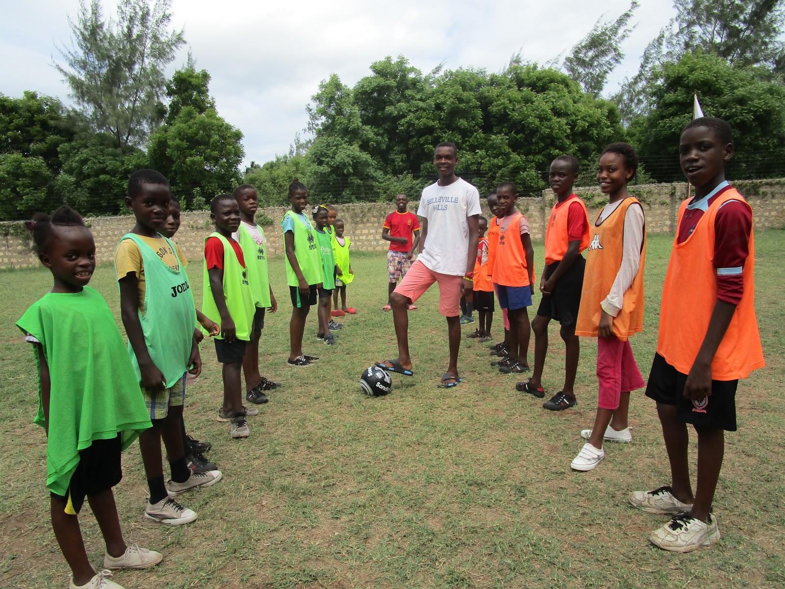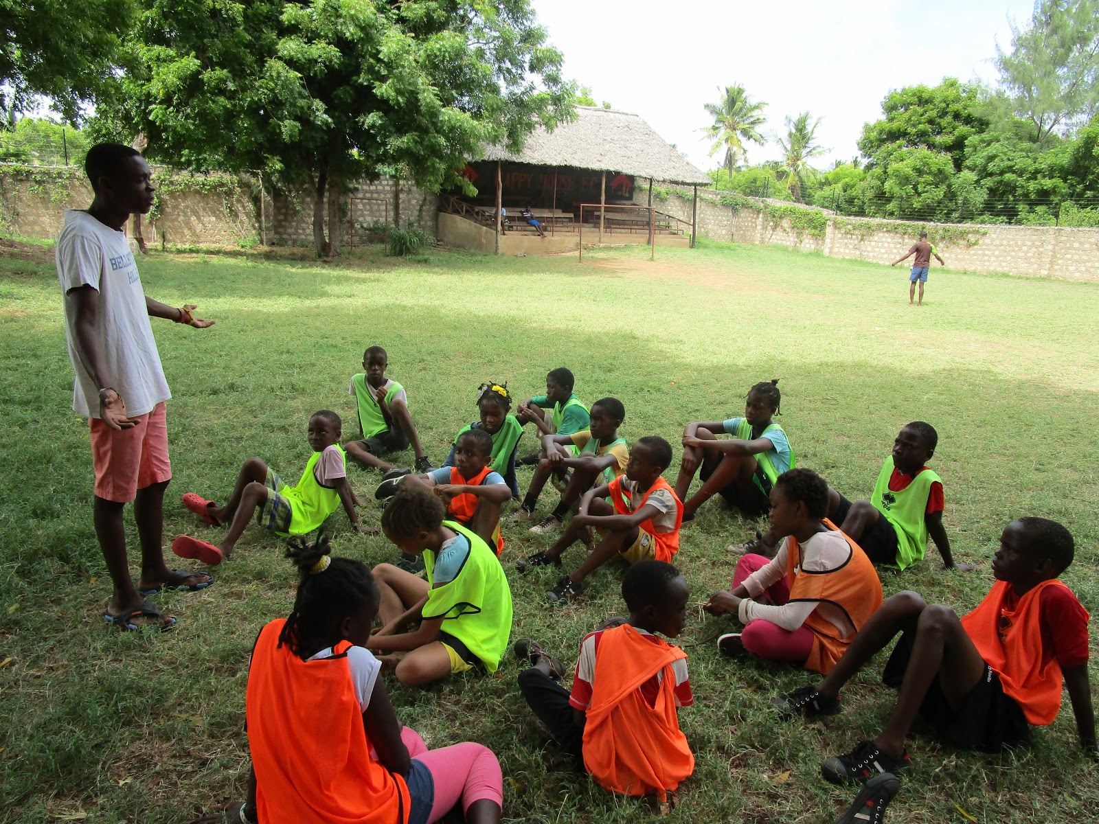 Evans has been coaching his younger brothers and sisters in soccer skills at Happy House.Knowing how much they love football, Mama Sue thought it would be a good idea if Evans found some good soccer skills videos for them to watch, before they went out on to the pitch to put what they had been watching into practice with coaches Evans and John.