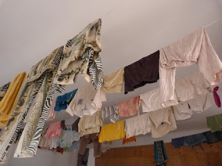 We have explain that while most of the time the sun does the job for us there are those times in the rainy season, as these pictures show, when even the lines we have in the laundry are not enough, and we have to use the kitchen too!