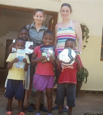 Lynsey is a member of Harrison’s sponsor family and he was there to welcome Lynsey (back left) and her friend, Amy Dutton, when they arrived, along with his brother, Ushindi, and sister Salama.