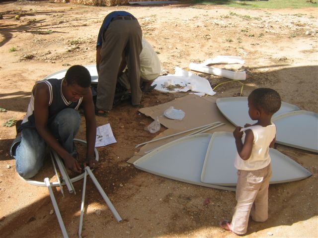 Putting the dish together was a little like a jigsaw puzzle, and one little girl had it all figured out. Even though she wasn’t sure what magic saucer shaped object was going work, Mwende was definitely overseeing the operation!