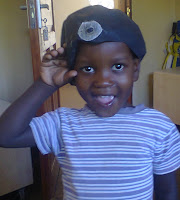 If you can’t kick it, you might as well wear it and it turns out to be a very good fit as a beret for this little boy.